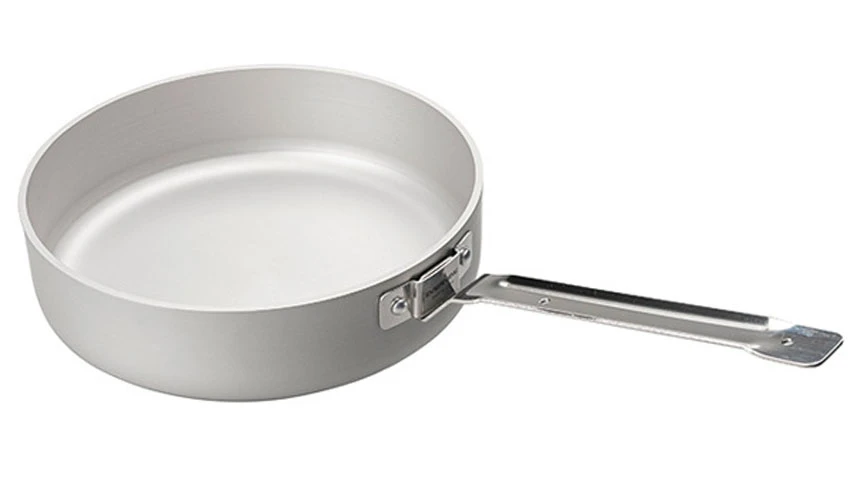 Zum Braten ist eine solide Alu-Pfanne deutlich besser geeignet als eine dünnere Materialstärke aus Titan. Weshalb wir diese Pfanne von evernew ins Programm genommen haben – sonst haben wir von evernew nur Titan-Geschirr.
