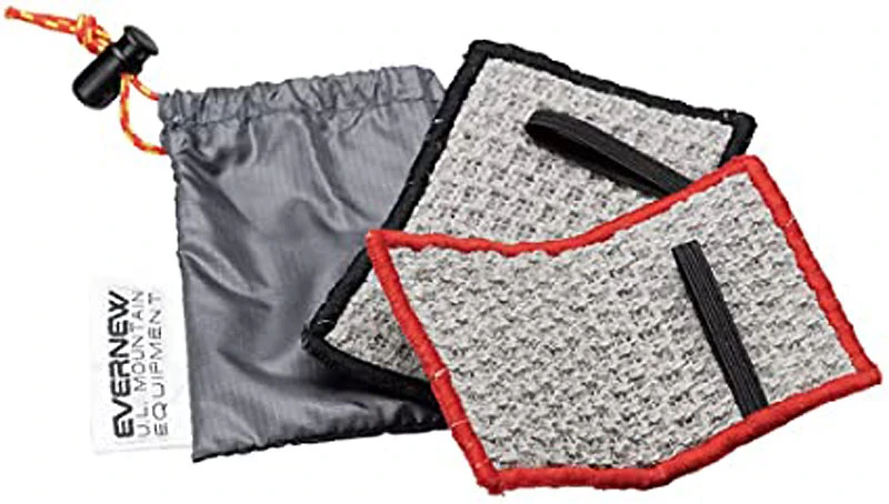 Ein Set aus 2 Reinigungspads für das Eß- und Kochgeschirr – aufgrund des wirklich winzigen Packmaßes und des Mini-Gewichts von 7 g auch für überzeugte UL-Puristen geeignet… Mensch spart dadurch die Mitnahme eines Spülmittels, weil die raue Oberfläche der Pads auch fester sitzende Reste gut abbekommen, ohne auch empfindliche beschichtete Oberflächen zu verkratzen.