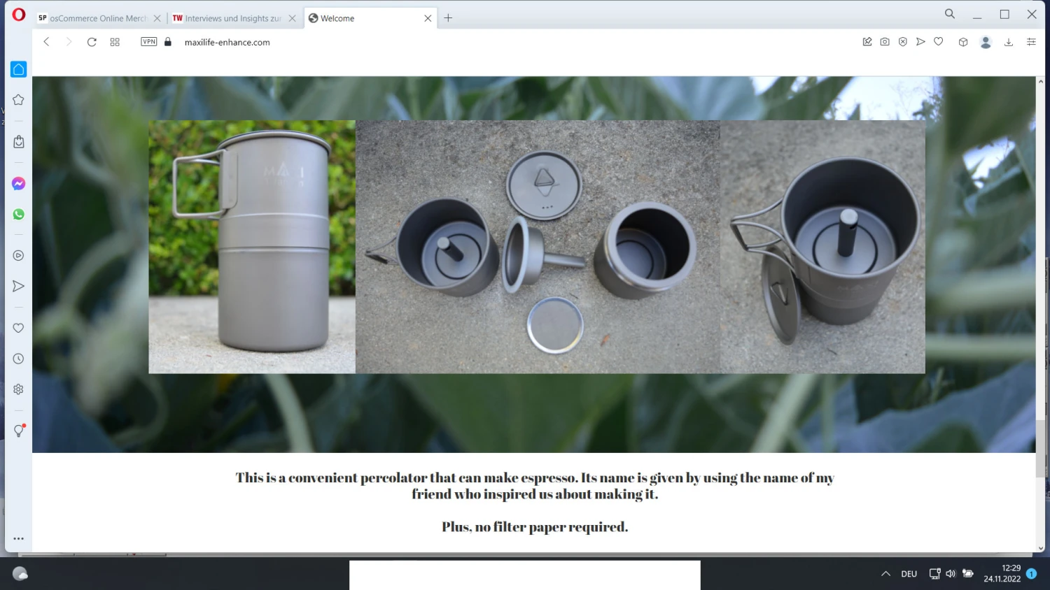 Diese Produkt-Info-Seite lassen wir aus emotionalen Erinnerungen online – der Original-Coffeemaker aus titanium war durch den Rezensenten inspiriert und trug deshalb auch seinen Namen… . Sehen Sie in die untenstehende Produktinfo für die Geschichte… .