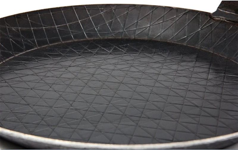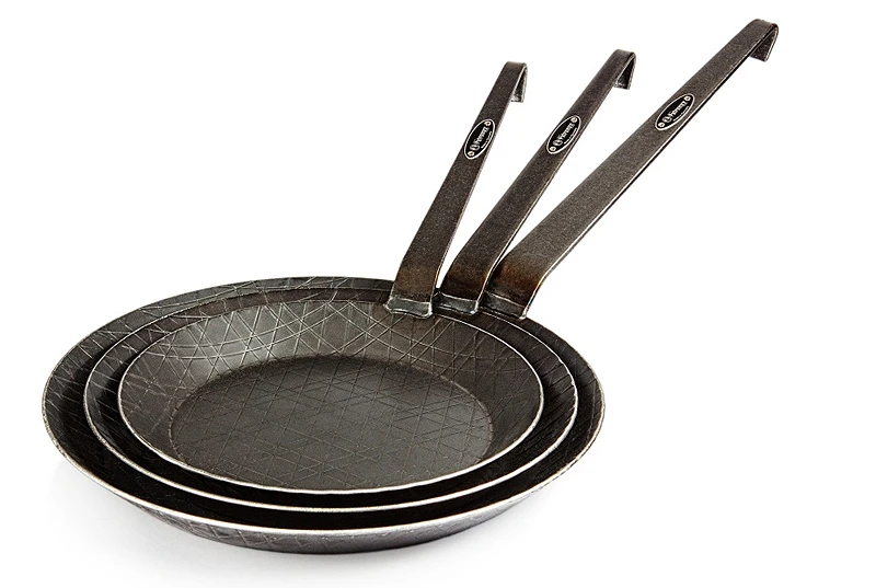 Schwere, schmiedeeiserne Qualität mit einer exzellenten Wärmeleitfähigkeit für das perfekte Steak unter freiem Himmel oder in der Küche zu Hause. Nichts für Leichtgewichts-Anhänger, beliebt unter anderem auch bei bushcraftern.