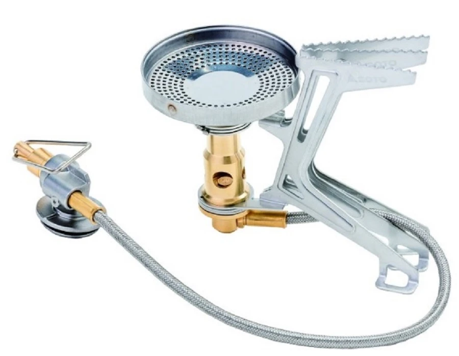 Gaskocher mit von der Brennstoffkartusche abgesetztem Brenner – dadurch mit niedrigerem Schwerpunkt als sein bauähnlicher Bruder Windmaster, dadurch auch standstabiler und damit besser geeignet für grössere Töpfe. Auch besser für grössere Topfdurchmesser ist der im Durchmesser etwas grössere Brennerkopf des Fusion.