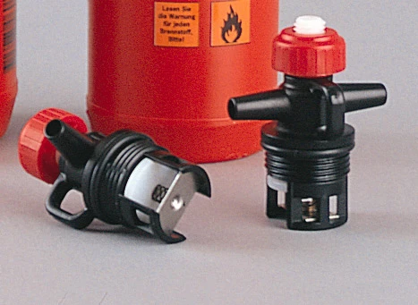 Ein Kunststoffflasche für den Transport von Spiritus, Benzin und Petroleum. Mit speziellem Sicherheits-Ausgiesskopf, der ein zielgenaues Befüllen von Brennkammern etc. einfach per Knopfdruck und Ausgiesstülle ermöglicht, trotzdem absolut dicht ist.